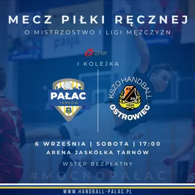 Handball Pałac Tarnów rozpoczyna nowy sezon 1. Ligi meczem inauguracyjnym przeciwko KSZO Ostrowiec Świętokrzyski. Spotkanie zaplanowano na pierwszy weekend września; gospodarze zapraszają kibiców do Areny “Jaskółka” w Tarnowie. Wstęp na wydarzenie jest bezpłatny, a organizatorzy zachęcają do wspólnego kibicowania i wsparcia drużyny od pierwszego gwizdka.