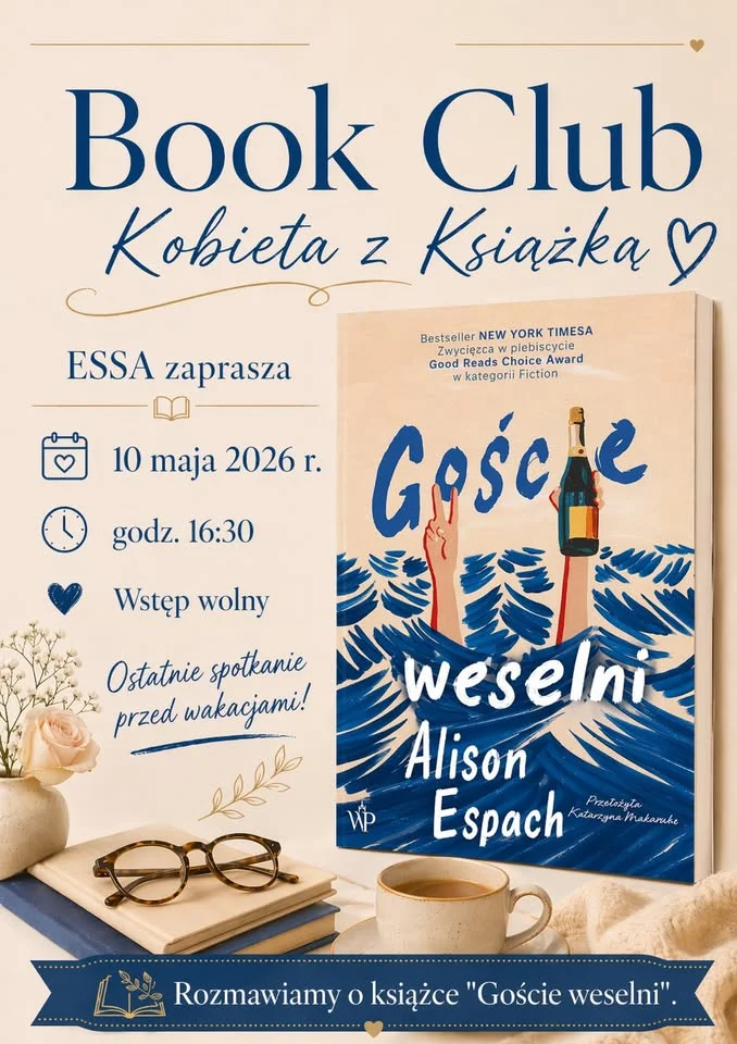 Majowe spotkanie kobiecego klubu książki będzie poświęcone „Gościom weselnym” Alison Espach To taki typ wydarzenia, na którym liczy się nie tylko sama lektura, ale też wymiana opinii, wrażeń i skojarzeń — dlatego dobrze odnajdą się tu osoby, które lubią książki, ale też swobodną rozmowę o emocjach, relacjach i codziennych sprawach.